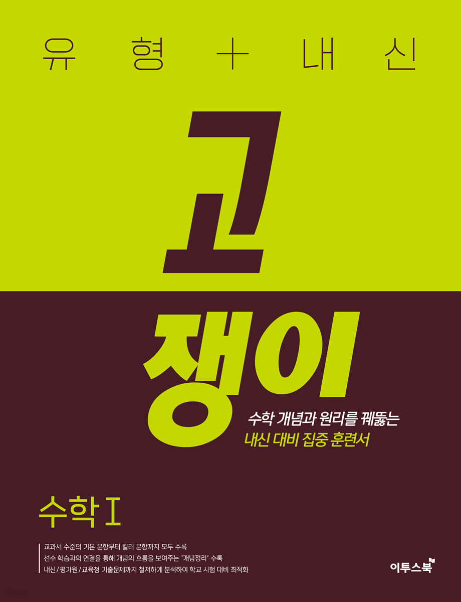 최근 5개년간 실제 고등학교 중간, 기말고사에 출제된 1000개 이상의 시험지를 분석하여 반영한 유형서+심화서 형태의 중상위권 교재로 내신에 자주 출제되는 빈출 문제는 물론, 수능형 문제의 비중이 높아지고 있는 최신 내신 트렌드에 최적화된 문제들을 엄선하여 수록하였다.