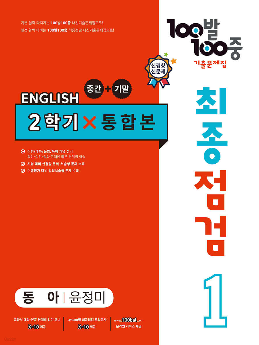 최근 3년간 전국 중학교 기출문제를 분석하여 출제 경향과 출제율을 기반으로 한 실전 중심의 교재이다. 출제율이 높은 기출 Best 문제와 과제용 기출 Best 쌍둥이 문제, 학생들이 쉽게 따라서 쓸 수 있도록 서술형을 쌍둥이 문제로 제공하고, 조건이나 형태가 바뀌어서 출제되어 해결방법이 쉽지 않은 유형의 문제를 별도로 선별하여 구성한 집중공략 코너에서는 손쉬운 해결전략을 제시한다. 100발100중 중등수학 기출문제집의 큰 장점으로 알려진 특별부록에서는 실전 감각을 점검할 수 있는 실전 모의고사 3회분, 시험에 반드시 나오는 문제로 구성된 족집게 마무리 100선(객관식 80선, 서술형 20선), 수학 만점자를 가리기 위해 출제되는 고난도 기출문제, 마지막으로 시험 직전 최종 점검을 할 수 있는 파이널 모의고사 5회분을 제공한다. 또한, 100발100중 홈페이지 http://www.100bal.com에서 문제풀이 동영상 강좌를 무료로 제공하고 있다.