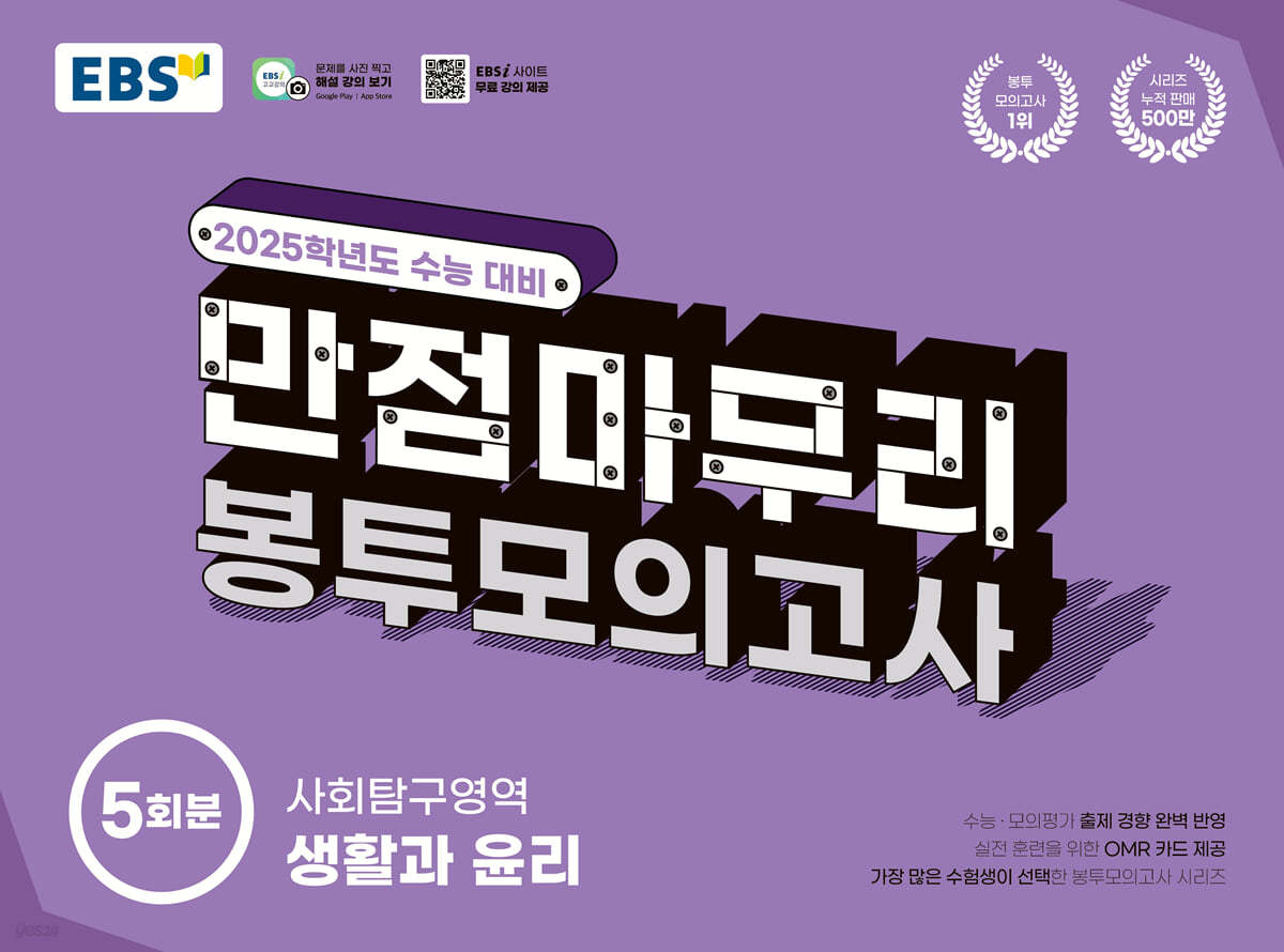 수능 시험지와 동일한 시험지 형태로 실제 시험 현장을 그대로 경험하여 실전 감각을 Up!할 수 있는 EBS 만점마무리 봉투모의고사! 최신 출제 경향 반영으로, 9월 모의평가와 수능 대비 단기 실전 학습을 할 수 있다. OMR 카드가 동봉되어 있어 답안 작성 훈련을 하며 나만의 실전 감각을 익힐 수 있다. ‘EBSi’에서 100% 무료 강의 제공! 인터넷 사이트와 스마트폰 ‘EBSi 고교강의’ 앱을 통해 들을 수 있다.