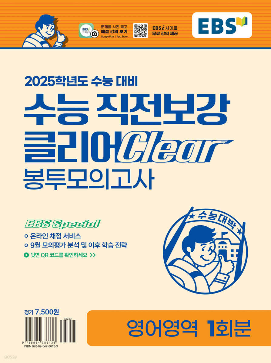 수능 전 마지막 모의고사 문제집! 9월 모의평가 출제 경향을 완벽 반영하여 수능 직전 수능과 가장 유사한 실전 훈련을 할 수 있다. EBS Special! 온라인 채점 서비스와 9월 모의평가 분석 및 이후 학습 전략을 제공한다.