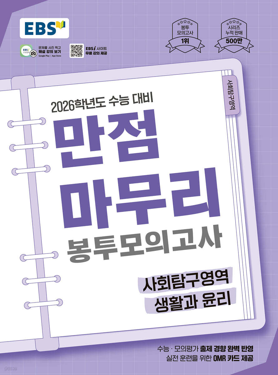 EBS 만점마무리 봉투모의고사 사회탐구영역 생활과 윤리 5회분 (2025년) 2026학년도 수능 대비 정답 답지 해설