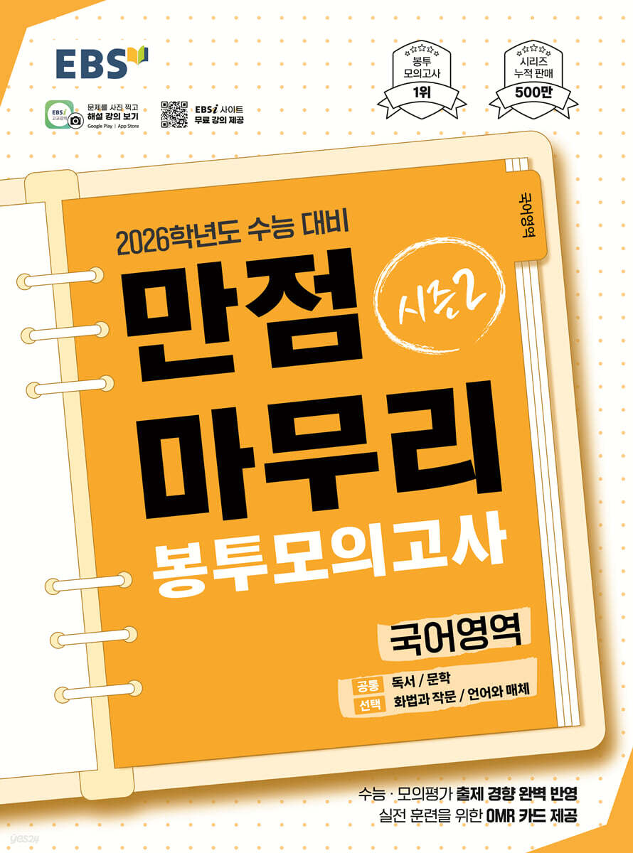 실제 수능과 동일한 체제와 난도의 문항을 담은 'EBS 만점마무리 봉투모의고사 시즌2'와 함께 수능 실전 감각 UP! 수능·모의평가의 최신 출제 경향을 완벽 반영한 실전 동형 모의고사로 9월 모의평가와 수능 대비 단기 실전 훈련이 가능하다. 실제 시험처럼 답안 작성 훈련을 하며 실전 감각을 키울 수 있는 OMR 카드가 동봉되어 있다.