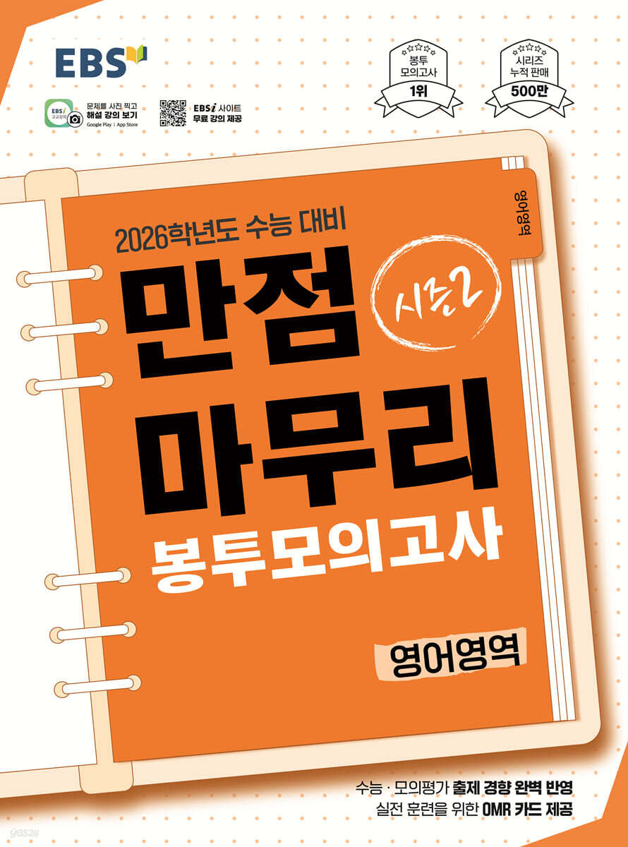 실제 수능과 동일한 체제와 난도의 문항을 담은 'EBS 만점마무리 봉투모의고사 시즌2'와 함께 수능 실전 감각 UP! 수능·모의평가의 최신 출제 경향을 완벽 반영한 실전 동형 모의고사로 9월 모의평가와 수능 대비 단기 실전 훈련이 가능하다. 실제 시험처럼 답안 작성 훈련을 하며 실전 감각을 키울 수 있는 OMR 카드가 동봉되어 있다.