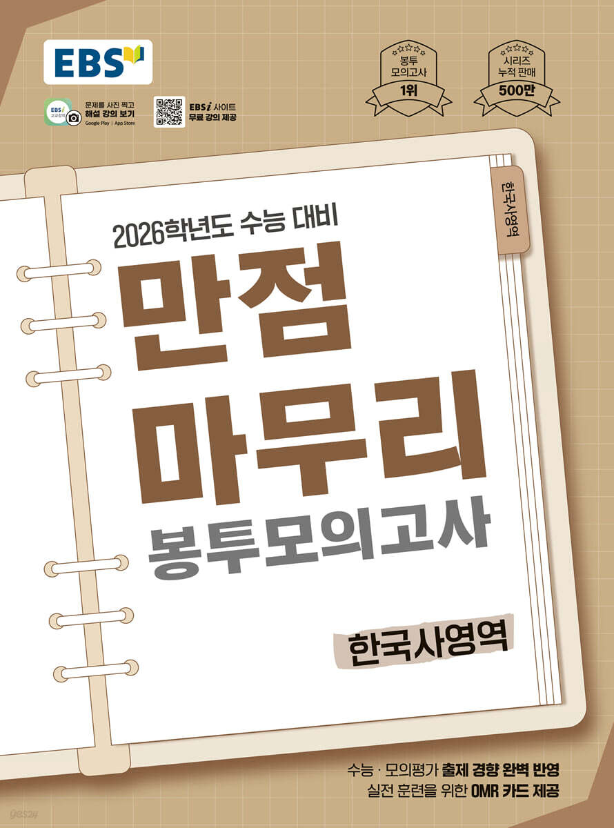 EBS 만점마무리 봉투모의고사 한국사영역 5회분 (2025년) 2026학년도 수능 대비 정답 답지 해설